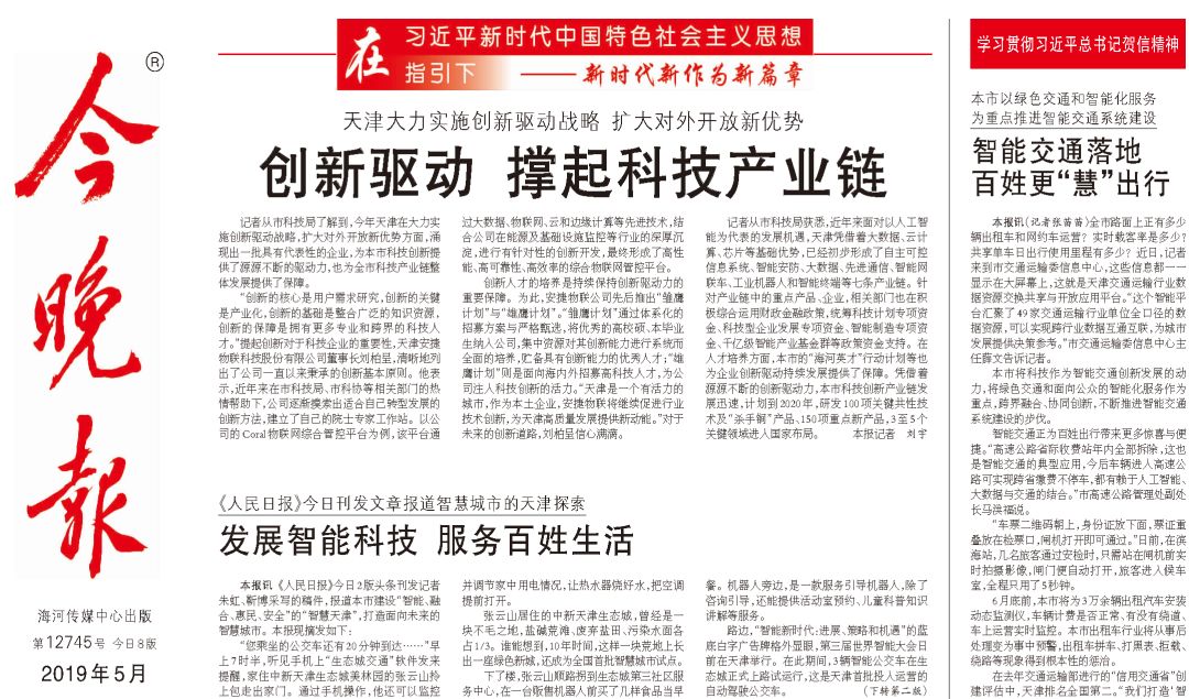 近日,天津suncitygroup太阳集团物联科技股份有限公司登上《今晚报》头版头条,以下为相关内容: