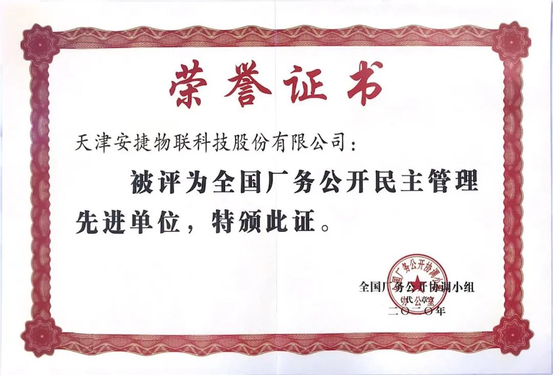 近日,天津suncitygroup太阳集团物联科技股份有限公司被全国厂务公开协调小组授予“全国厂务公开民主管理先进单位”称号。